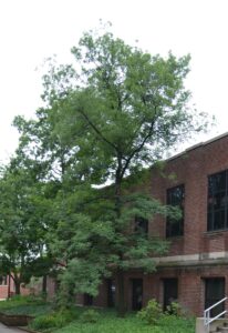 Leaves are alternate, pinnately compound, 6-10" long, usually with seven 3-6" long leaflets. The long, blunt, and flattened buds have a strong yellow coloration, especially notable in the winter.