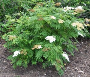 Alternate leaves (8-10") are pinnately compound with somewhat elongated 2-4" leaflets that are doubly and sharpley serrated.