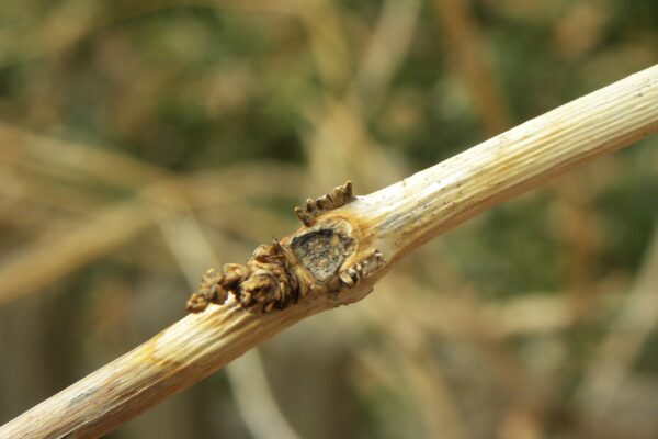 Leaves opposite, pinnately compound, 6-14" long with 7-11 leaflets, each toothed. New and exposed stems are red. Holds on by aerial rootlets.