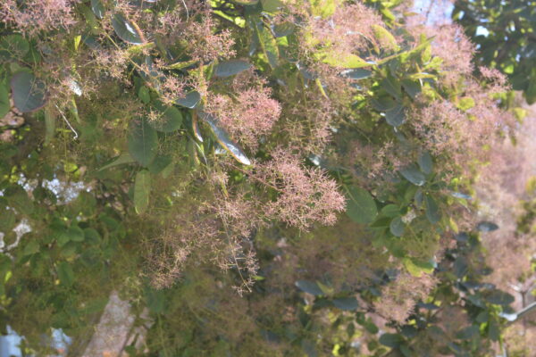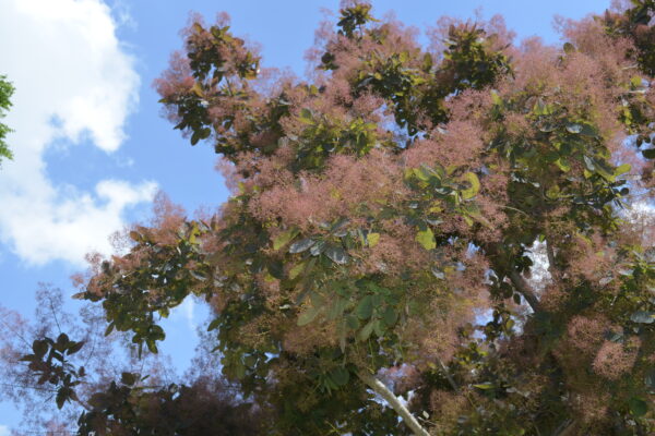 Pink (Large (14" long by 11" wide) pink fruiting panicles, effective in the summer and into the fall)