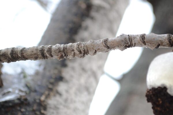 Leaves are opposite, pinnately compound, 8-15" long with 5-9 leaflets (usually 7). Leaflet apex often with remote serrations. 'Autumn Applause' tends to have moderately drooping leaves and narrow, more lanceolate leaflets than the species type. Slightly grooved petioles and U-shaped leaf scars. Bark deeply furrowed into diamond pattern.