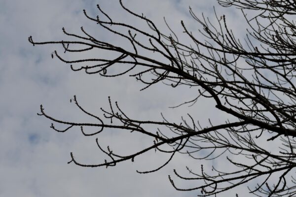 The lustrous, deep green leaves are opposite, simple, prominately toothed with an acuminate apex. Buds are black and pubescent.