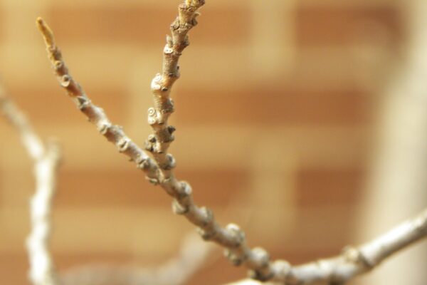 slender, brown and pubescent stems become gray, smooth, and glabrous with maturity