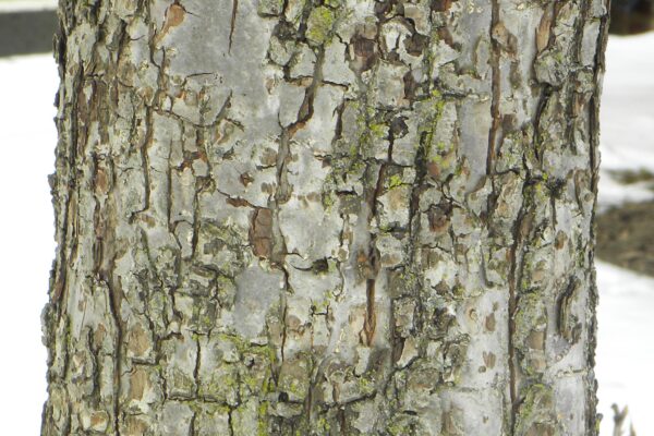 Simple leaves in clusters on short spurs. Buds have several imbricate scales and are usually reddish-brown with hairs protruding under scales. Fruits have multiple seeds (as compared to the single seed pit of Prunus species). The prominently lenticelled bark is a lustrous, deep reddish-brown.