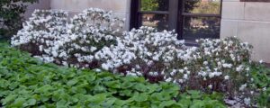 Pink;white (Light pink buds; flowers are white; late April to May)