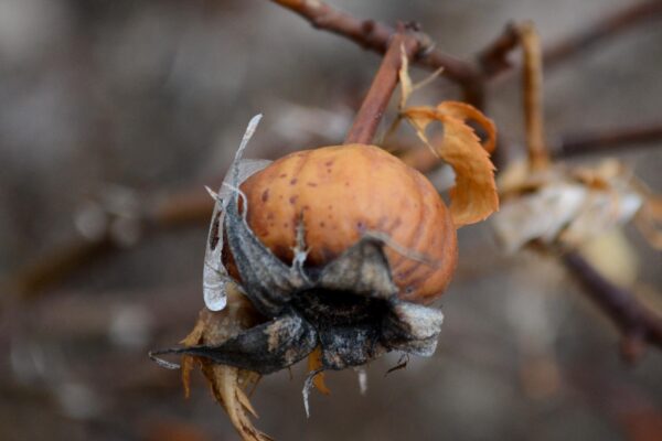 Leaves are alternate, odd-pinnate, 5-9 leaflets (1-2" long), elliptic to elliptic-obovate serrate. Petiole base of rose leaves have a distinct flange (or wing). Thorny branches.