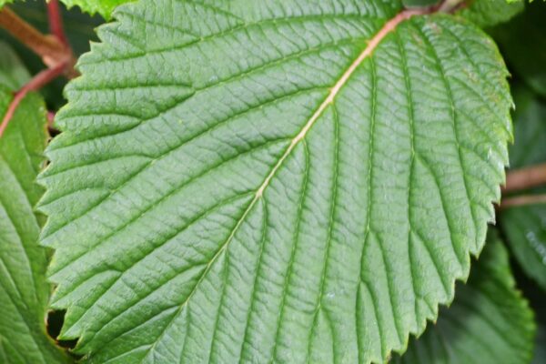 Leaves opposite, simple 2-4" long, half as wide, ovate, coarsely serrate, pubescent underneath, with impressed veins. Buds are naked. Young stems are tomentose. Flowers are all sterile (no fruits produced) and the clusters resemble snowballs (Viburnum plicatum f. tomentosum has flat-topped cymes of sterile and fertile flowers).
